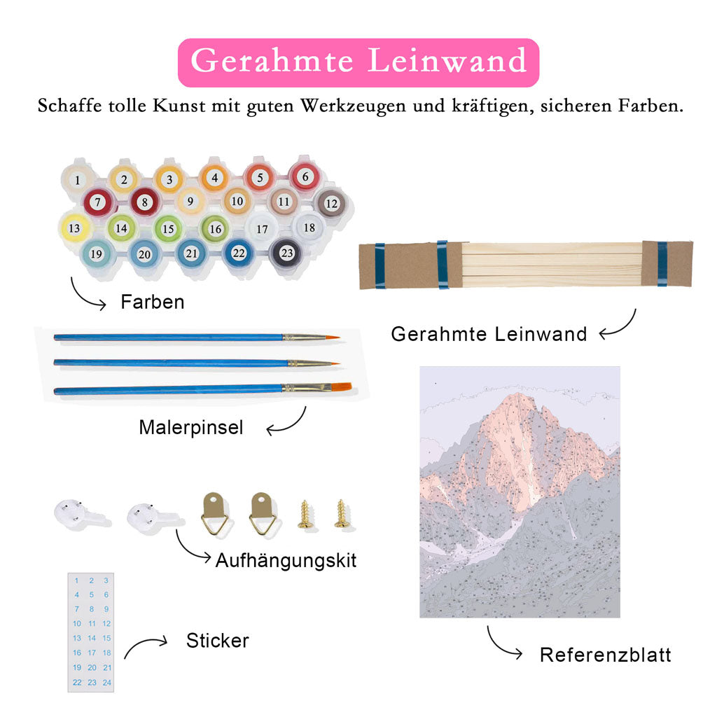 • DIY-Malen nach Zahlen: Dieses Set enthält alles, was Sie benötigen, um ein professionell aussehendes Kunstwerk zu schaffen, indem Sie die nummerierten Bereiche mit Farbe ausfüllen. Ideal für Anfänger und erfahrene Künstler, die Freude am Malen haben.