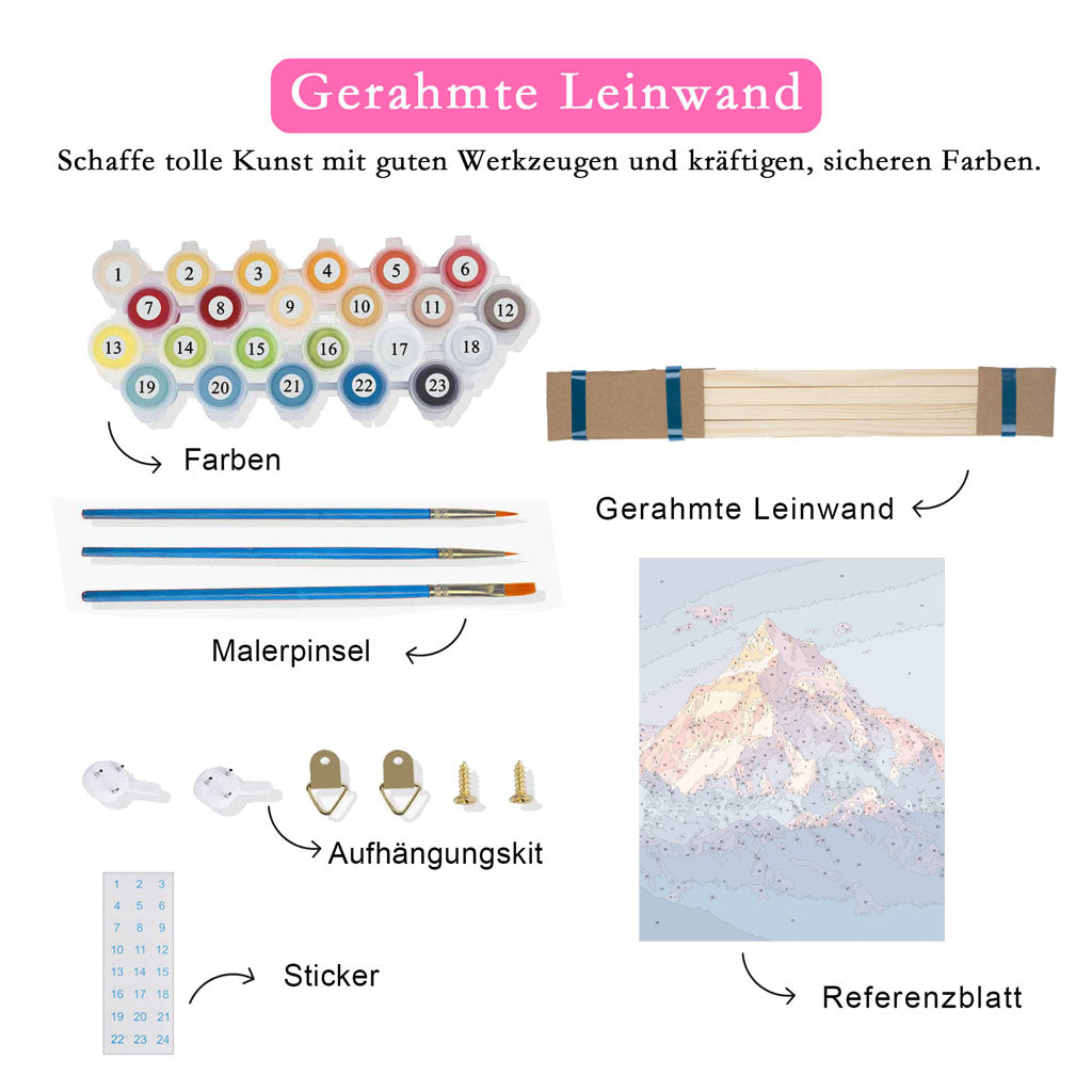 • DIY-Malen nach Zahlen: Dieses Set enthält alles, was Sie benötigen, um ein professionell aussehendes Kunstwerk zu schaffen, indem Sie die nummerierten Bereiche mit Farbe ausfüllen. Ideal für Anfänger und erfahrene Künstler, die Freude am Malen haben.
