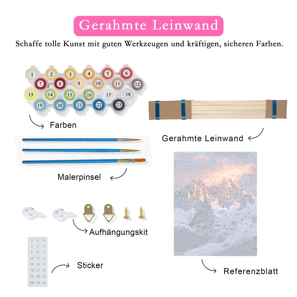 • DIY-Malen nach Zahlen: Dieses Set enthält alles, was Sie benötigen, um ein professionell aussehendes Kunstwerk zu schaffen, indem Sie die nummerierten Bereiche mit Farbe ausfüllen. Ideal für Anfänger und erfahrene Künstler, die Freude am Malen haben.