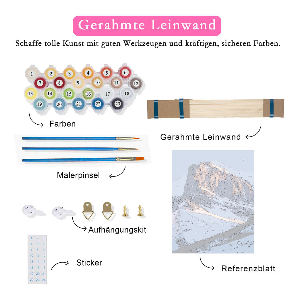 Malen nach Zahlen erfordert keinerlei Vorkenntnisse. Alles, was Sie tun müssen, ist den Anweisungen zu folgen und den kreativen Prozess zu genießen, um Ihr eigenes Kunstwerk zu schaffen.